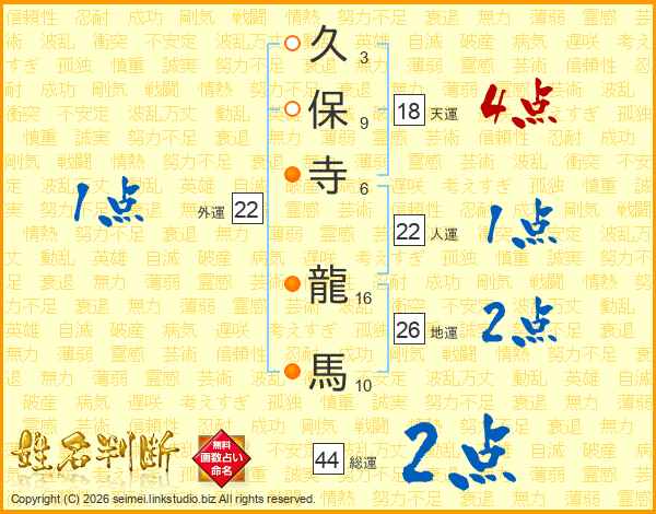 久保寺龍馬さんの総運は44画の2点!