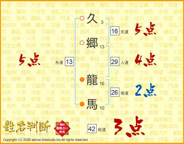 久郷龍馬さんの総運は42画の3点!