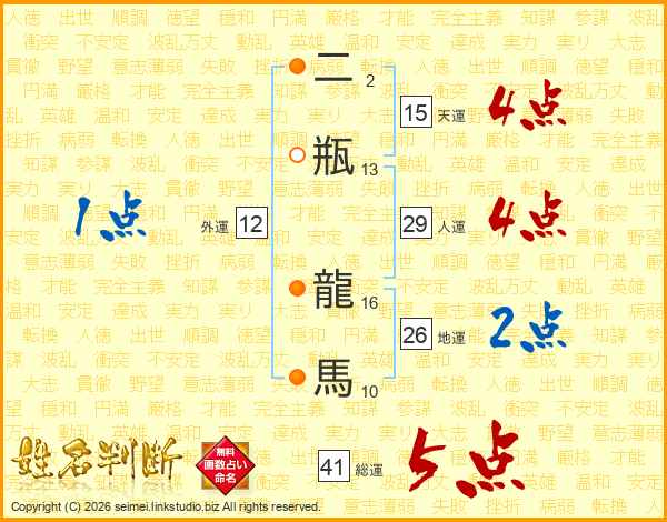 二(2画)瓶(13画) 龍(16画)馬(10画)