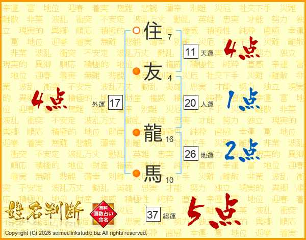 住友龍馬さんの総運は37画の5点!