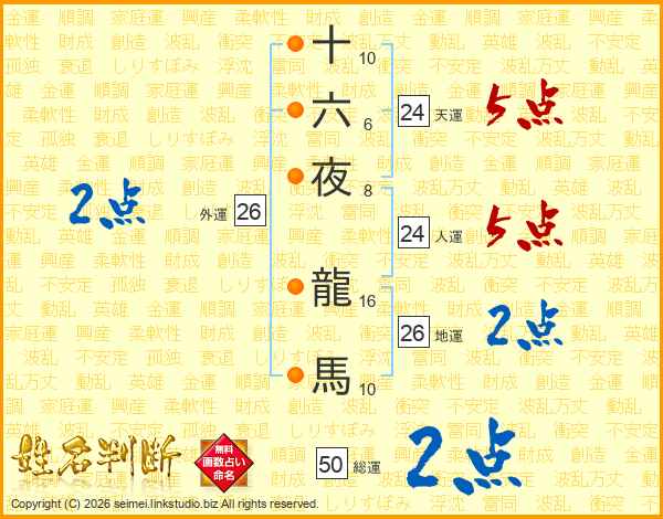 十六夜龍馬さんの総運は50画の2点!