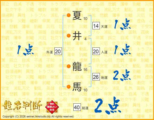 夏井龍馬さんの総運は40画の2点!