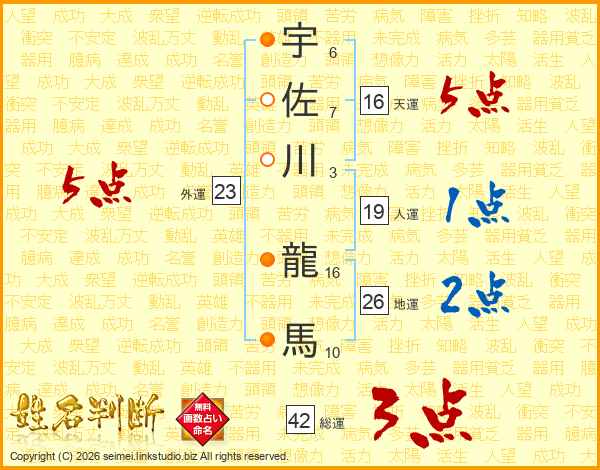宇佐川龍馬さんの総運は42画の3点!