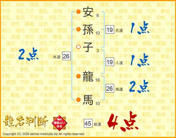 安孫子龍馬さんの総運は45画の4点!