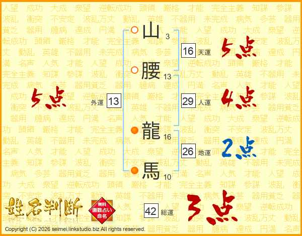 山腰龍馬さんの総運は42画の3点!