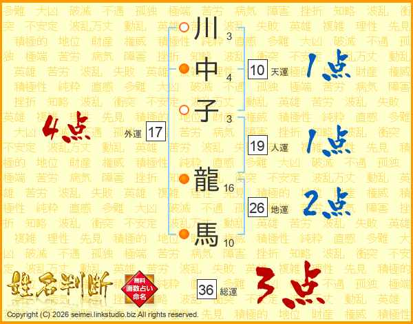 川中子龍馬さんの地運は26画の2点!
