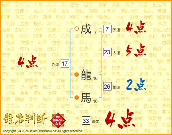 成龍馬さんの総運は33画の4点!