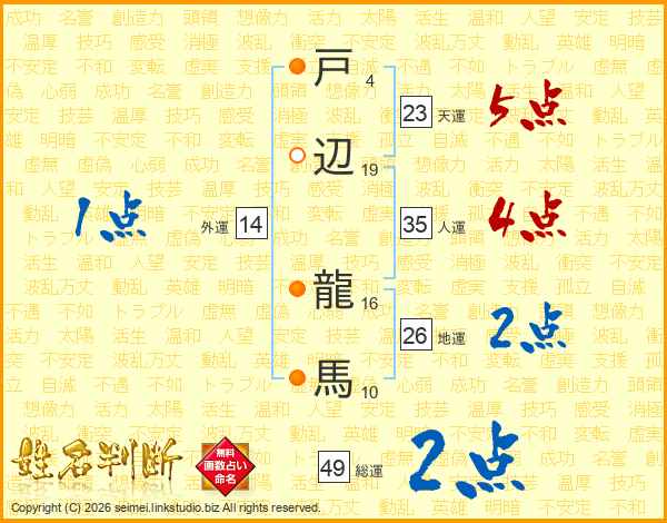 戸辺龍馬さんの総運は49画の2点!