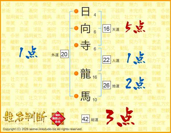 日向寺龍馬さんの総運は42画の3点!