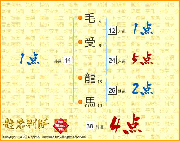 毛受龍馬さんの総運は38画の4点!