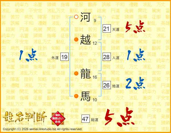 河越龍馬さんの総運は47画の5点!