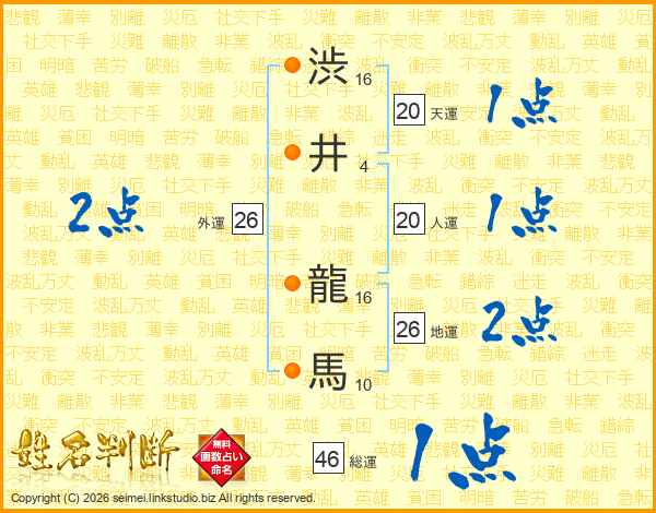 渋井龍馬さんの総運は46画の1点!