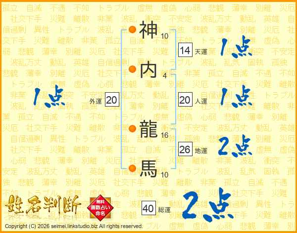 神内龍馬さんの総運は40画の2点!