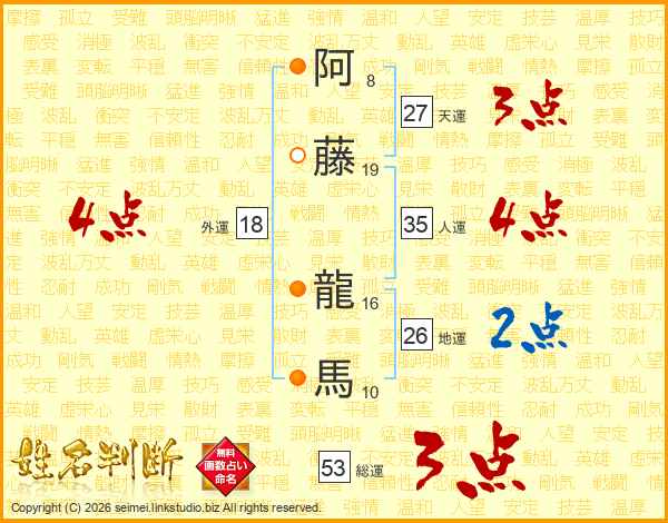 阿藤龍馬さんの総運は53画の3点!