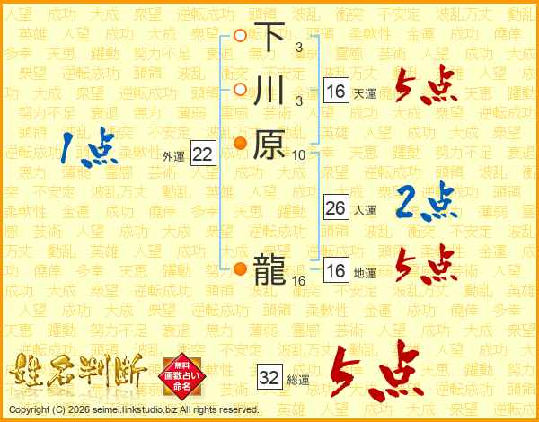 下川原龍さんの総運は32画の5点!
