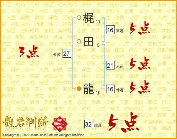 梶田龍さんの総運は32画の5点!