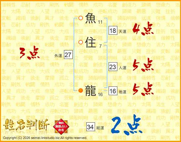魚住龍さんの総運は34画の2点!