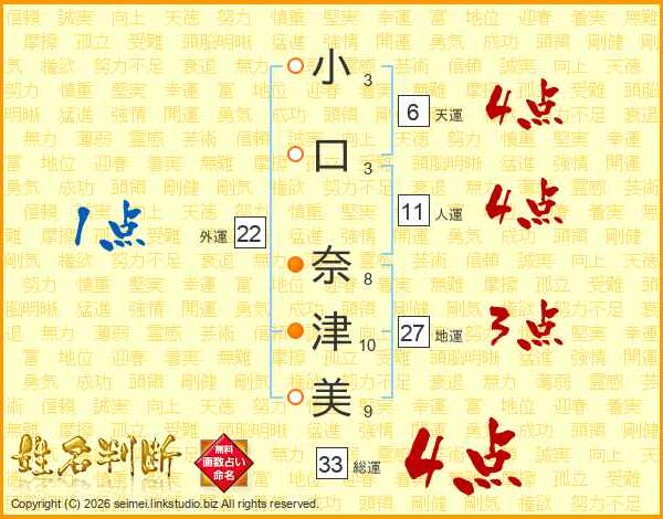 小口奈津美さんの総運は33画の4点!