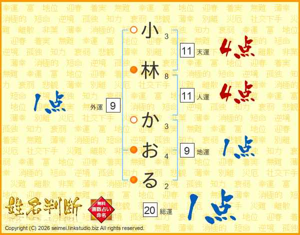 小(3画)林(8画) か(3画)お(4画)る(2画)