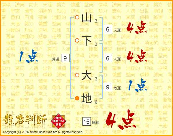 山下大地さんの総運は15画の4点!