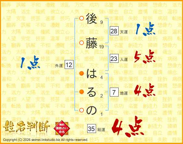 後藤はるのさんの総運は35画の4点!