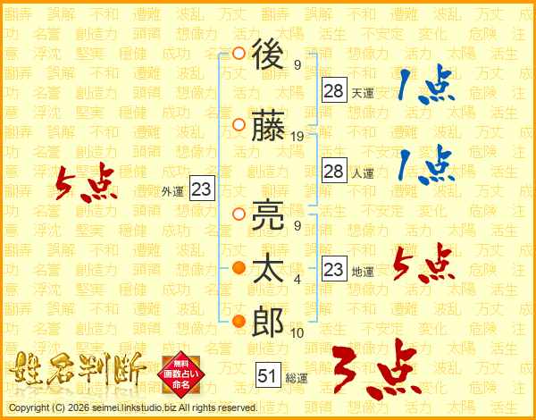 後藤亮太郎さんの地運は23画の5点!