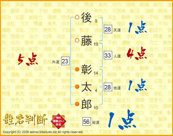 後藤彰太郎さんの人運は33画の4点!