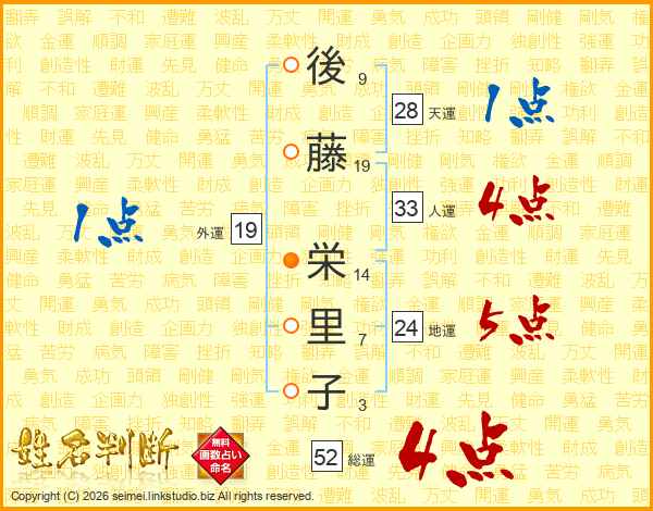後藤栄里子さんの総運は52画の4点!