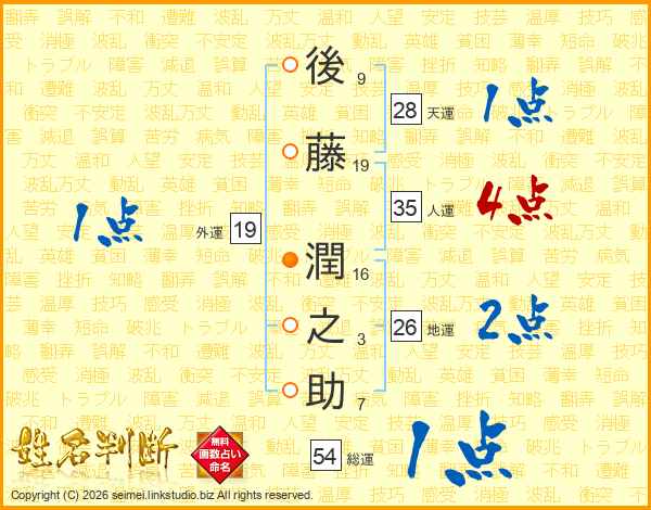 後(9画)藤(19画) 潤(16画)之(3画)助(7画)