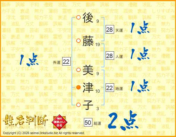 後藤美津子さんの地運は22画の1点!