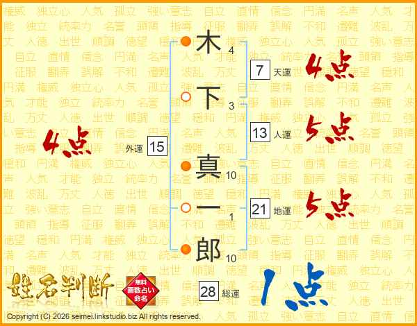 木下真一郎さんの総運は28画の1点!