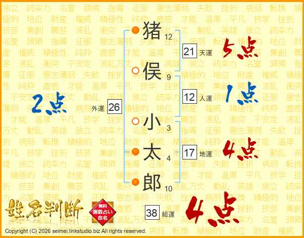 猪俣小太郎さんの天運は21画の5点!