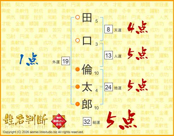 田口倫太郎さんの総運は32画の5点!