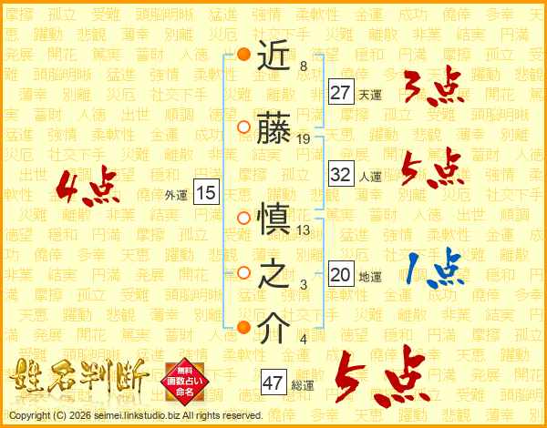 近藤慎之介さんの総運は47画の5点!