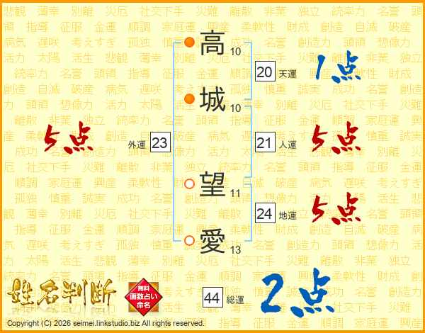 高城望愛さんの総運は44画の2点!